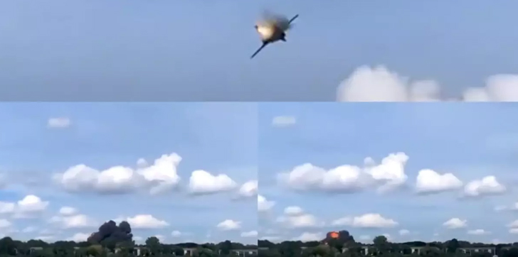 En redes sociales circulan varios videos en el que la aeronave interrumpe su vuelo para expulsar a su piloto después de una explosión y termina cayendo en la localidad de Van Buren Township.