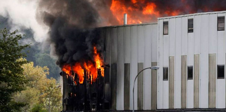 El fuego comenzó tras una explosión en un compartimiento de gas de una carretilla elevadora, según la corporación.