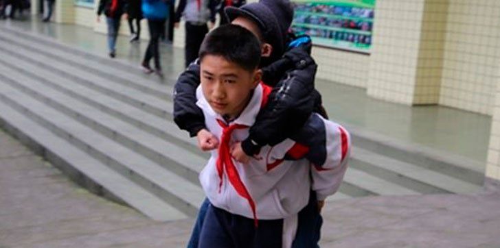 CHINA.- Un niño, con movilidad reducida, en China ha podido ir a clase durante los últimos seis años sin problemas gracias a que su compañero de clases, y mejor amigo, lo lleva en su espalda todos los días.