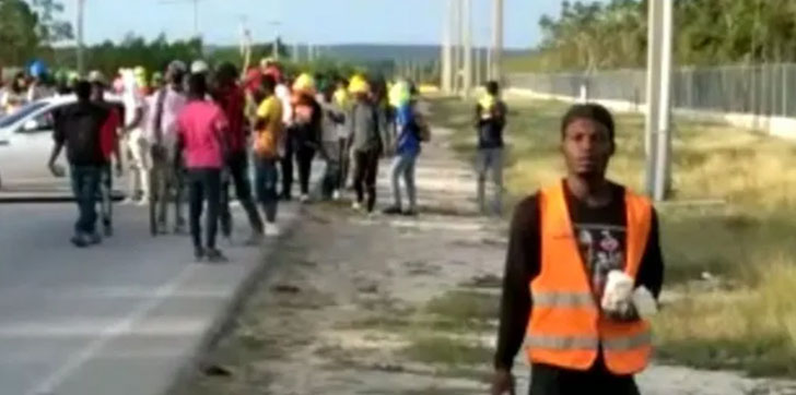 De acuerdo con imágenes obtenidas, el incidente inició luego de que dos individuos haitianos se lanzaran del autobús en el que eran trasladados, resultando herido uno de ellos.