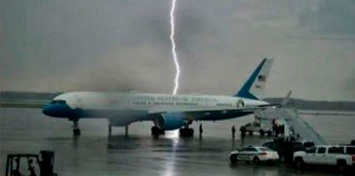 CAROLINA DEL NORTE.- Un rayo que este lunes impactó en tierra en el estado de Carolina del Norte lo hizo justo detrás de donde se encontraba estacionado el Air Force One, el avión presidencial estadounidense, en el aeródromo militar de Cherry Point en Havelock. El incidente tuvo lugar poco después de la llegada de Donald Trump a ese estado.