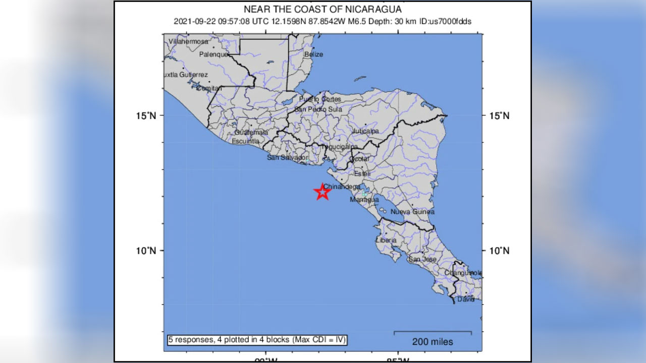 NICARAGUA.- Un terremoto de magnitud 6.5 sacudió a Nicaragua esta mañana, reportó el Servicio Geológico de Estados Unidos (USGS, por sus siglas en inglés).