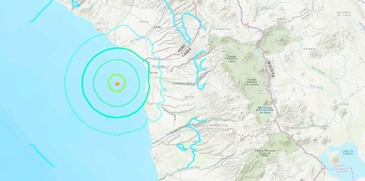 El foco del sismo se registró a 42 kilómetros al oeste de la ciudad de Arica (que cuenta con más de 200.000 habitantes) a una profundidad de 44,2 kilómetros.