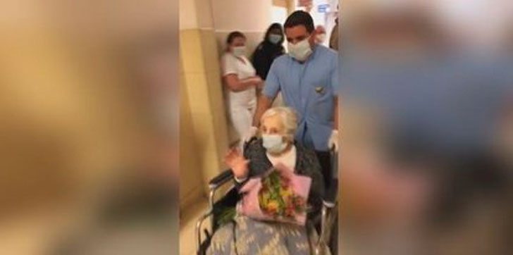 La anciana salió del hospital entre aplausos de los sanitarios que la atendieron, según se pudo ver en un vídeo publicado en Facebook por la Fuerza Aérea- de quien depende el hospital- el pasado lunes.