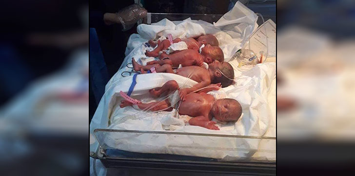 De acuerdo con el canal iraquí Al Sumaria, el parto ocurrió el pasado 11 de febrero en la provincia de Diala, al sureste de Bagdad. El Departamento de Salud local señaló en un comunicado que se trata de un precedente «raro y único» en Irak y confirmó que la madre y sus bebés gozan de buena salud.