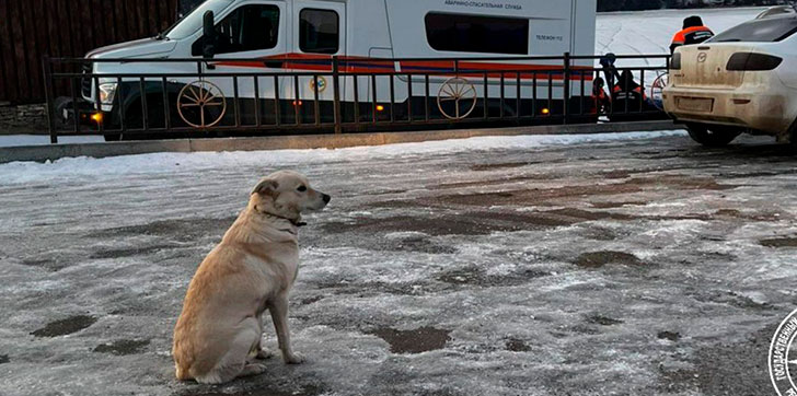 Una perra espera cuatro días a su amo ahogado mientras cruzaba un río helado en Rusia