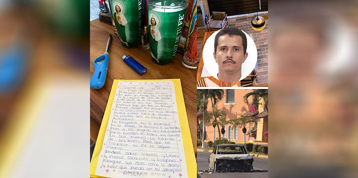En una de las habitaciones principales se hallaba un altar dedicado a la Virgen de Guadalupe, San Judas Tadeo y San Chárbel. Junto al altar había una carta fechada en enero de 2026 con el Salmo 91 reproducido completamente, haciendo referencia a la protección ante la desgracia y las dificultades.