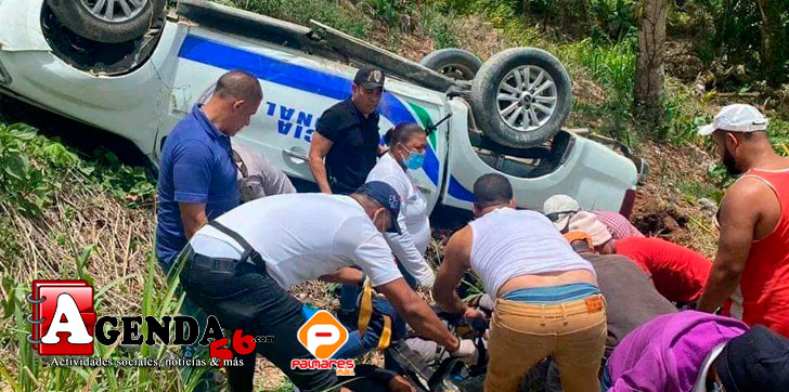 HERMANAS MIRABAL.– Una unidad de la Policía Nacional (PN) sufrió un accidente de tránsito mientras daba persecución a presuntos delincuentes en la comunidad de Montellano en Salcedo.