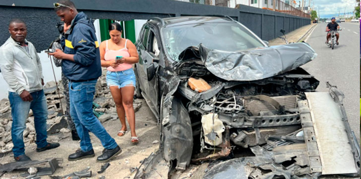 AGENDA56, SANTO DOMINGO. – Un accidente de tránsito se registró en la avenida Martín Luther King, anteriormente conocida como La Pista, cuando una yipeta Hyundai Tucson se estrelló violentamente contra la pared perimetral de la zona franca de Hainamosa.