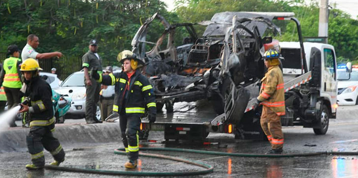 El jefe del cuerpo de bomberos del Distrito Nacional reportó que otro vehículo fue afectado por la explosión del tanque de gas, pero que no se reportaron heridos.