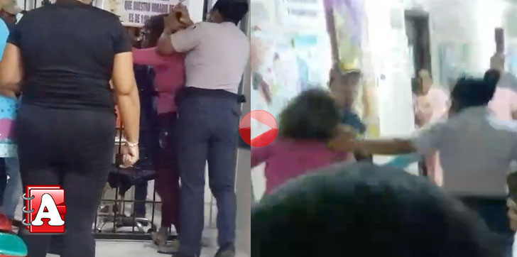 El video muestra como la fémina recibe golpes de un hombre no identificado mientras la agente de seguridad la mantiene retenida.