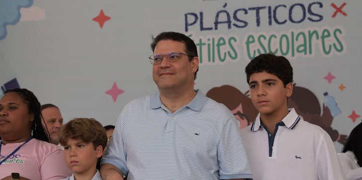 Acompañado por la alcaldesa Carolina Mejía, quien lidera el proyecto desde hace 7 años, Sanz Lovatón se dirigió ante cientos de familias del Distrito Nacional las cuales acudieron desde temprano para intercambiar botellas plásticas por útiles escolares y tabletas electrónicas, como parte de una estrategia conjunta entre la Dirección General de Aduanas y la Alcaldía.